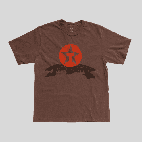 Soft Cactus Jack Stick Figure Dope Brown T Shirt with relaxed fit.